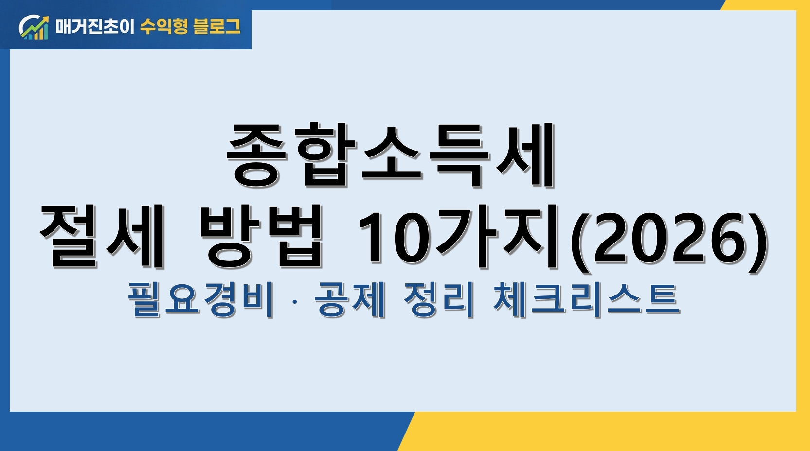 2026 종합소득세 절세를 위해 필요한경비와 공제 항목을 구분해 정리하고, 증빙 준비부터 누락 방지까지 바로 적용 가능한 체크리스트 10가지를 제공합니다.