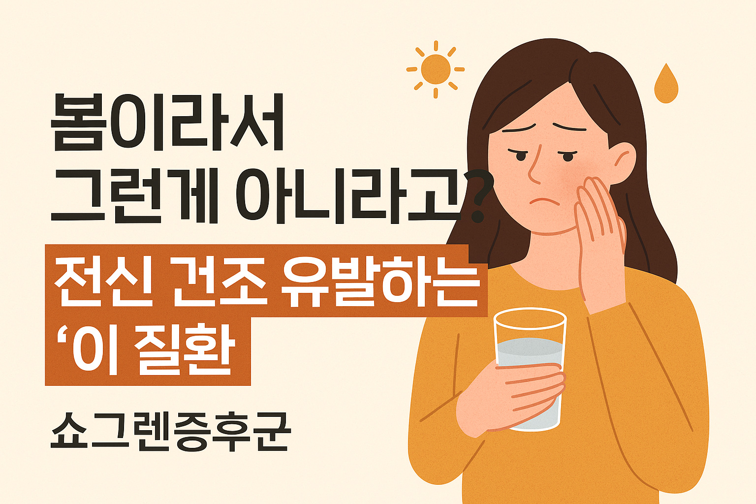 ‘건조함’이 단순히 계절 때문만은 아닐 수 있습니다. 쇼그렌증후군은 평생 관리가 필요한 질환이지만, 빠르게 진단하고 적절한 치료를 시작한다면 충분히 관리할 수 있습니다.